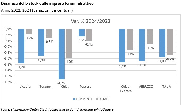 A livello provinciale, è possibile notare una maggiore vocazione agricola di Chieti anche per le imprese femminili.
